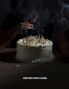 Description: A campaign targeting young adults to middle aged people warning smokers that cigarettes can shorten your life.